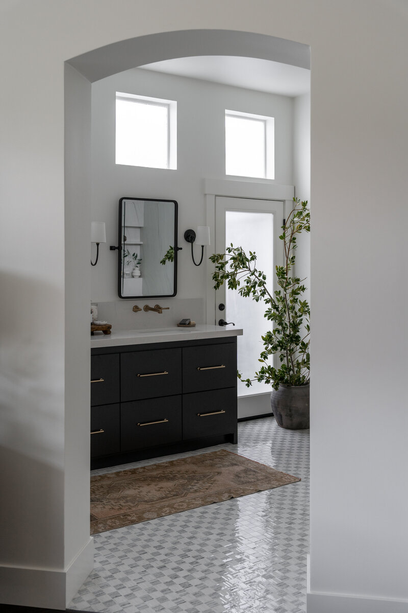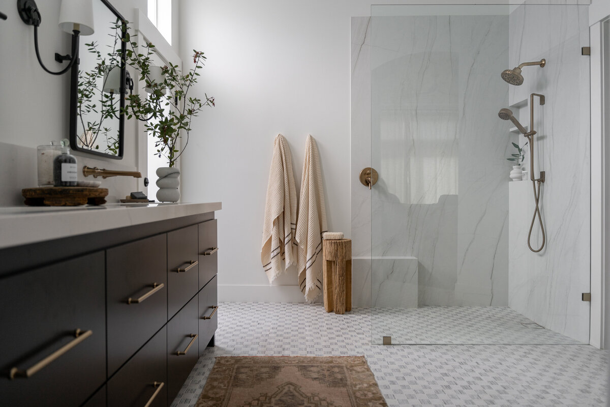 We layered in striking details: slab shower walls for a sleek, seamless look, checkered marble mosaic flooring for timeless style, and a custom vanity that anchors the room with sophistication. Every element was chosen with precision, resulting in a space that feels powerful, polished, and perfectly fit for a true Bad Mamma Jamma.