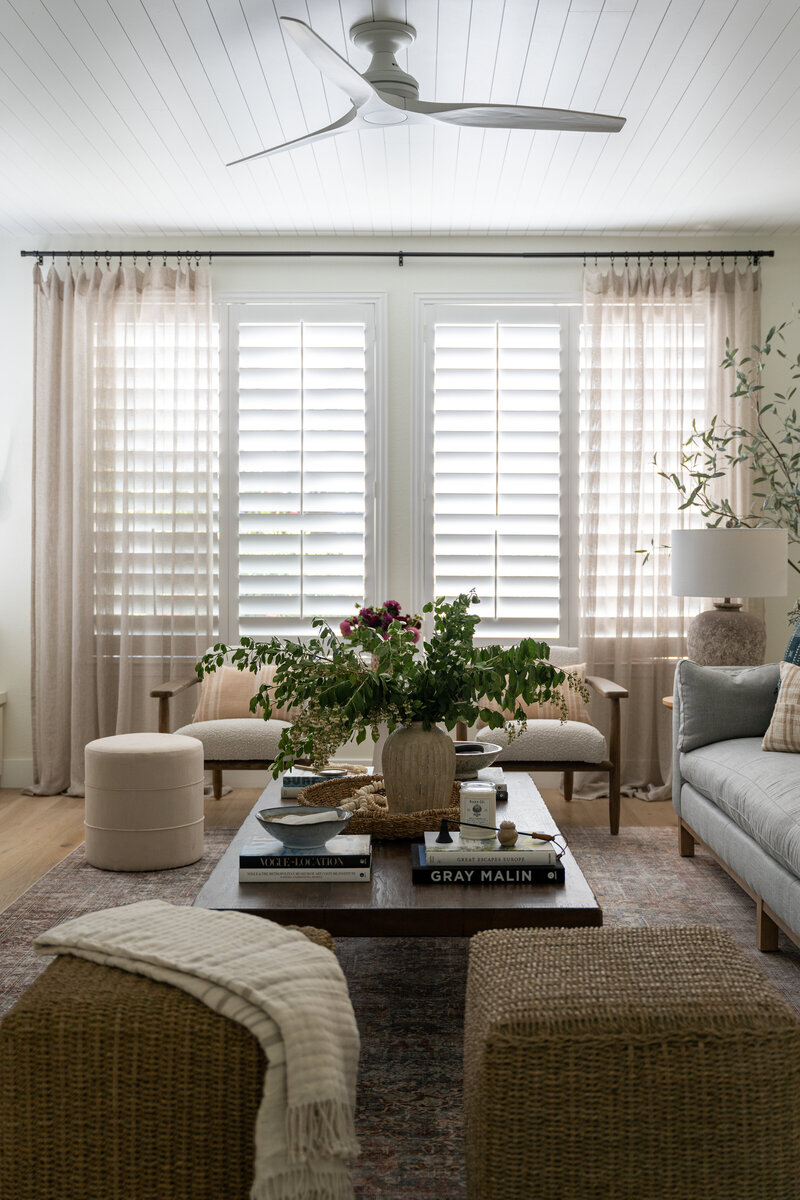 The design embodies casual cool and easy breezy living, perfectly tailored for a young family that loves to gather, relax, and celebrate. We expanded the family room by removing part of a wall and moving the fireplace from the corner to the center, giving it presence and balance.
